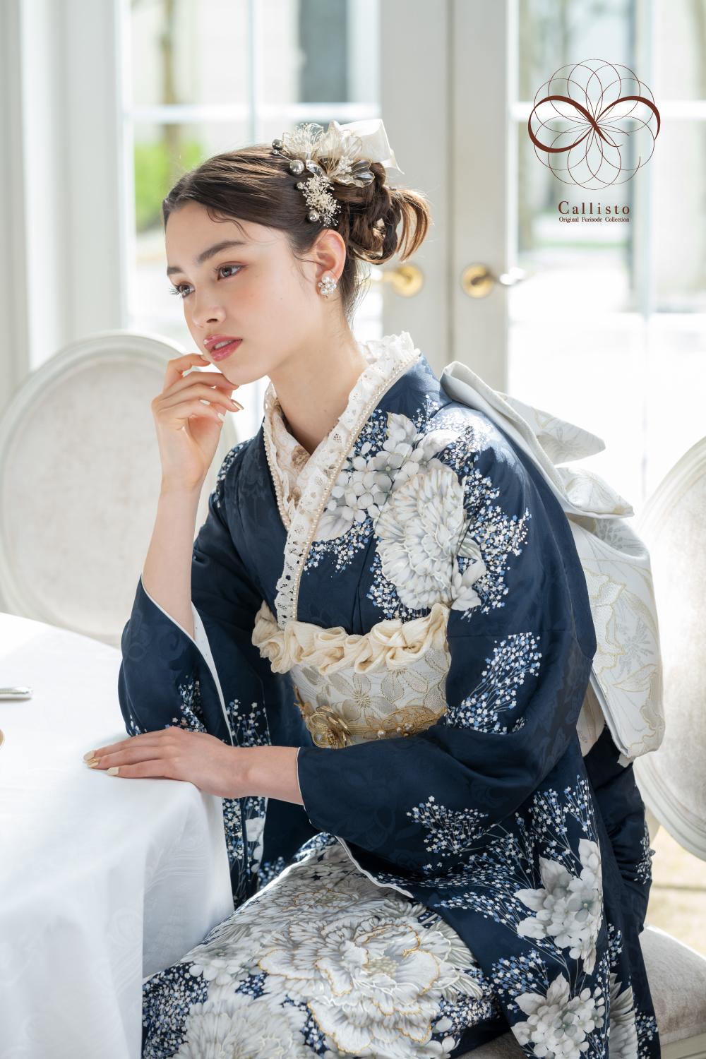 カスミ草と牡丹の花を大胆にあしらい、清らかで高貴なイメージを演出